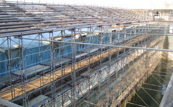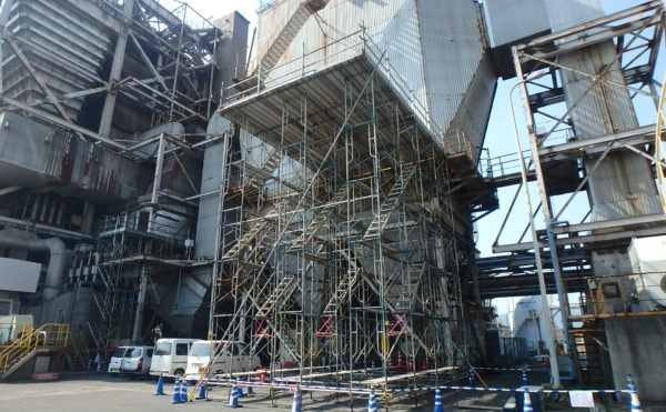 〈橋梁足場工事〉、〈プラント足場工事(枠組足場・手摺先行型足場・単管足場・ローリング足場)〉を行います。